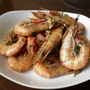 海虾、姜丝、蒜粒、青葱、红尖椒、盐、黄酒、黑胡椒粉。