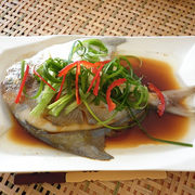 白鲳鱼、青葱丝、红椒丝、姜、盐、白酒、味事达蒸鱼鼓油。