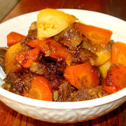 牛腩、洋葱、土豆、胡萝卜、啤酒、盐、糖、孜然粉。