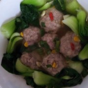 猪肉馅、玉米粒、青菜、枸杞、米酒、盐、鸡汁、生抽、淀粉、橄榄油。