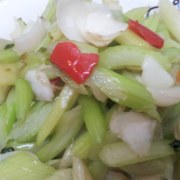 西芹、鲜百合、红椒、葱姜、盐、糖、鸡粉。