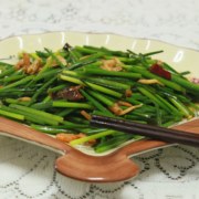 韭菜花、河虾、葱、姜、干辣椒、盐、鸡精、蚝油、生抽、味精。
