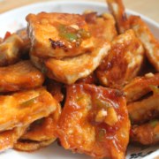 北豆腐、鸡蛋、青椒、红椒、姜、蒜、蕃茄酱、盐、鸡精、十三香、胡椒粉、生抽、水淀粉。