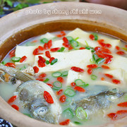 鱼杂、豆腐、枸杞、水、油、盐、葱、姜、白胡椒粉、料酒。