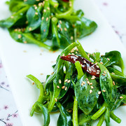 菠菜、粉丝、芝麻、盐、鸡精、香油、麻油、芥末油、碱面。