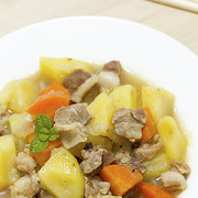 羊肉、土豆、胡萝卜、水、洋葱、油、盐、白糖、生抽、迷迭香、香叶、桂皮、姜。
