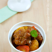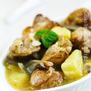 肉丸、胡萝卜、洋葱、土豆、开水、黄油、咖喱膏、椰浆、盐、白糖。