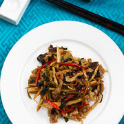 猪肉、冬笋、水发木耳、黄瓜、油、盐、黑胡椒粉、五香粉、白糖、葱、姜、红杭椒、香醋、生抽、料酒、花椒、淀粉。