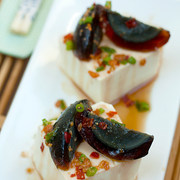 内脂豆腐、皮蛋、肉松、纯净水、小葱、红尖椒、盐、白糖、蚝油、陈醋、香油。