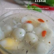 糯米粉、鸽蛋、薄荷尖、枸杞子。