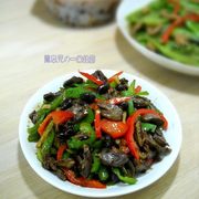 鸽心、蒜瓣、青椒、红椒、食油、蒸鱼酱油、盐、淀粉。