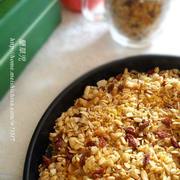 燕麦片、花生、白芝麻、酒泡枸杞子、玉米碎、蜜柚汁、色拉油。
