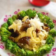 西兰花、银耳、黑木耳、鸡蛋、蒜、油、盐。