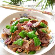 卤牛肉、青椒、洋葱、蒜、食油、盐、生抽。