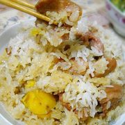 鸡腿、干香菇、枸杞子、香葱、生姜、生抽、淀粉、盐、芝麻油。