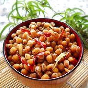 干黄豆、生姜、干红椒、食油、盐、黑胡椒粉、孜然粉。