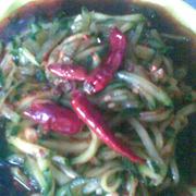 黄瓜、蒜、干辣椒、酱油、醋、香油、花椒、盐、味精、鸡精、糖。
