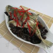 鲈鱼、黑木耳、红彩椒、葱、盐。