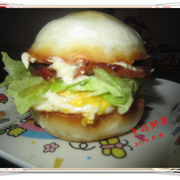 馒头、鸡蛋、培根、生菜、芝士片、沙拉酱、花生油。