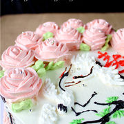 6寸戚风蛋糕、淡奶油、水果、蓝莓酱、花生碎、色素。