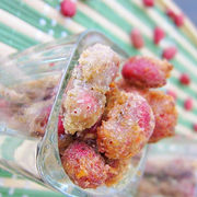 红皮花生、鸡蛋、清水、玉米淀粉、孜然粉、辣椒粉、白糖、花生油、花椒粉、盐。