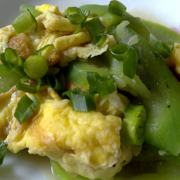 丝瓜、鸡蛋、葱、姜、蒜、油、盐、蚝油。