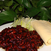 猪里脊、甜面酱、葱、姜、老抽、白糖、鸡精、料酒、蛋清、淀粉、香油。