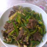 牛肉、青辣椒、芹菜、生姜、大蒜、盐、生抽、生粉、植物油、糖。