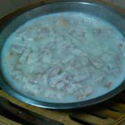 五花肉、大蒜、姜丝、辣椒丝、洋葱丝、盐、酱油、白酒、陈醋、糖。