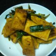 豆干、蒜苗、新鲜辣椒、干辣椒、大蒜。