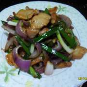 五花肉、辣椒、葱、洋葱、盐、白酒、生抽。