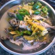 大头鱼、毛豆仁、姜、葱、盐、生抽、糖。