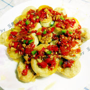 茄子、剁椒、面粉、大蒜、青椒、胡萝卜、海米。