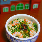豆腐、鲜虾、海米、葱、蒜、高汤。