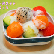 水果黄瓜、火龙果、木瓜、西瓜、酸奶。