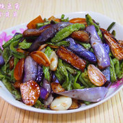 茄子、豆角、大蒜、淀粉、食用油、生抽、蚝油。