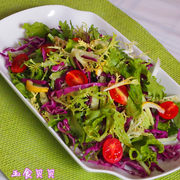 生菜、苦菊、紫甘蓝、圣女果、黄瓜、柠檬、蜂蜜、白醋、油茶籽油、生抽、芝麻油、盐、黑胡椒分。