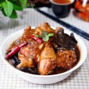 乌鸡、花椒、红辣椒、八角、桂皮、香叶、葱姜、玉米油、蒜末、姜末、酱油、玉米油、糖、味极鲜酱油、蚝油。