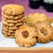 低筋面粉、黑麦粉、糖粉、小苏打、泡打粉、盐、鸡蛋、玉米油、核桃仁。