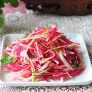 心里美萝卜、雪梨、山楂糕、黄瓜、红甜椒粒、盐、糖、白醋、凉开水。