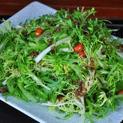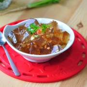 海菜凉粉、疙瘩咸菜、胡萝卜、香菜、生抽、陈醋、香油、蒜末、糖。