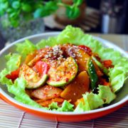 土豆、茄子、茭瓜、洋葱、胡萝卜、青红黄灯笼椒、韩国大酱、辣椒粉、香油、白醋、葱末、白糖、蒜末、花生油、生菜、熟芝麻。