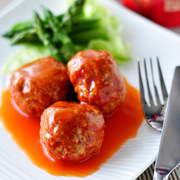 牛肉馅、猪肉馅、面包屑、鸡蛋、洋葱粒、肉豆蔻粉、姜粉、橄榄油、番茄酱、白砂糖、盐、干淀粉、清水、橄榄油。