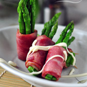 芦笋、培根、盐、胡椒粉、蛋黄酱、食用油。