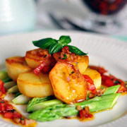 土豆、芦笋、西红柿、洋葱、罗勒叶、鲜味儿酱油。