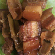 五花肉、笋干、姜、料酒、冰糖、老抽。