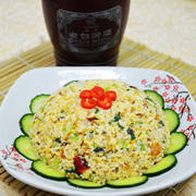 豆腐渣、豆豉鲮鱼、元葱末、香菜末、葱末、尖椒末、花生油、盐、干辣椒段。