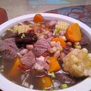 排骨、玉米、胡萝卜、香菇、花生米、枸杞、红枣、葱、生姜、盐。