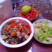 排骨、胡萝卜、土豆、香菇、蒜、葱花、枸杞、食用油、糖、盐、醋、酱油、味精、蚝油。