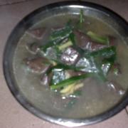 猪红、韭菜、姜丝、香油、盐、鸡精、胡椒粉。